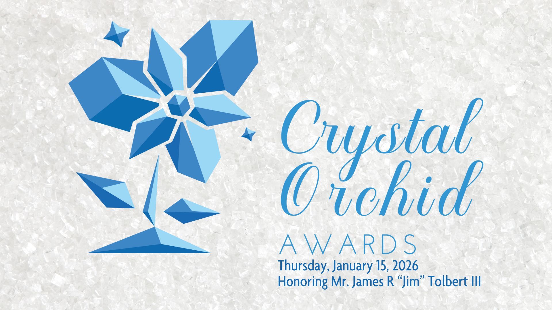 We invite you to join us in honoring Jim Tolbert by becoming a sponsor or by attending our Crystal Orchid Awards on January 15.